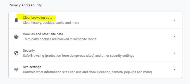 Select the clear data button.